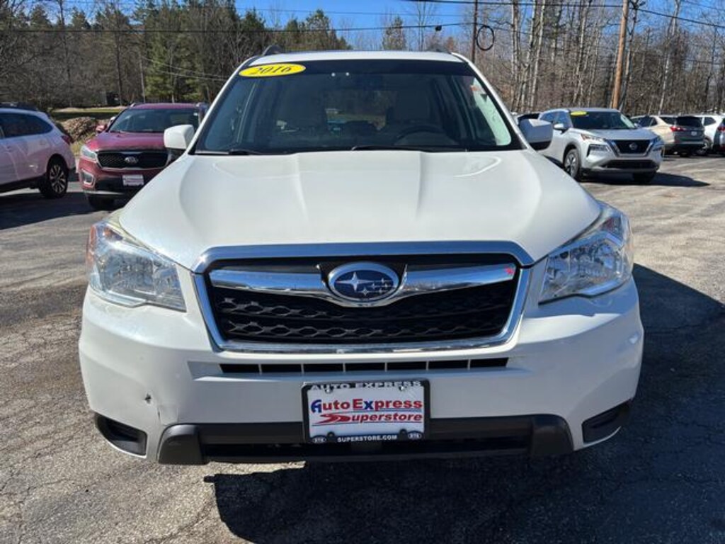 Check out this 2016 Subaru Forester 2.5i Premium, a versatile SUV known for its reliability, safety, and all-weather capability. Available now at Auto Express RT8 Superstore, this Forester is a great choice for commuters, families, or anyone who enjoys adventure and the outdoors.Finished in Crystal White Pearl with a Gray interior, this Forester has a clean, timeless look and a spacious, comfortable cabin. It???s powered by a dependable 2.5L 4-cylinder engine paired with a smooth CVT (variable) transmission, delivering a great balance of performance and efficiency with 24 city / 32 highway MPG (27 MPG combined).Like all Subarus, this Forester comes equipped with Symmetrical All-Wheel Drive, providing outstanding traction and stability in rain, snow, and rough road conditions. With 120,876 miles, it has proven reliability and is ready for many more miles ahead.Vehicle Highlights:??? 2.5L 4-Cylinder Engine??? CVT (Variable) Transmission??? Symmetrical All-Wheel Drive (AWD)??? 24 City / 32 Highway MPG (27 MPG Combined)??? Crystal White Pearl Exterior??? Gray Interior??? 120,876 Miles??? Stock #: R26B41If you're looking for a dependable SUV with excellent fuel economy and legendary Subaru AWD capability, this 2016 Subaru Forester 2.5i Premium is a fantastic option.Stop by Auto Express RT8 Superstore today or contact us to schedule your test drive before it???s gone! ??